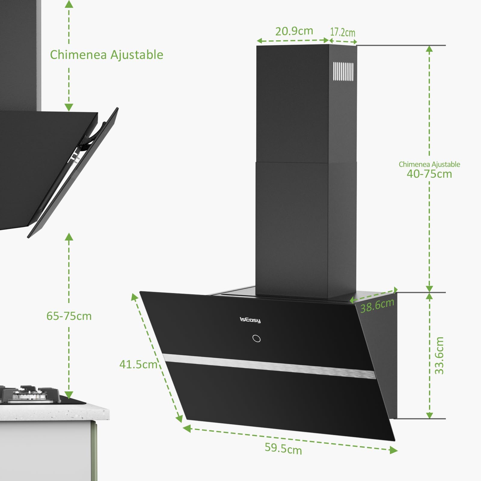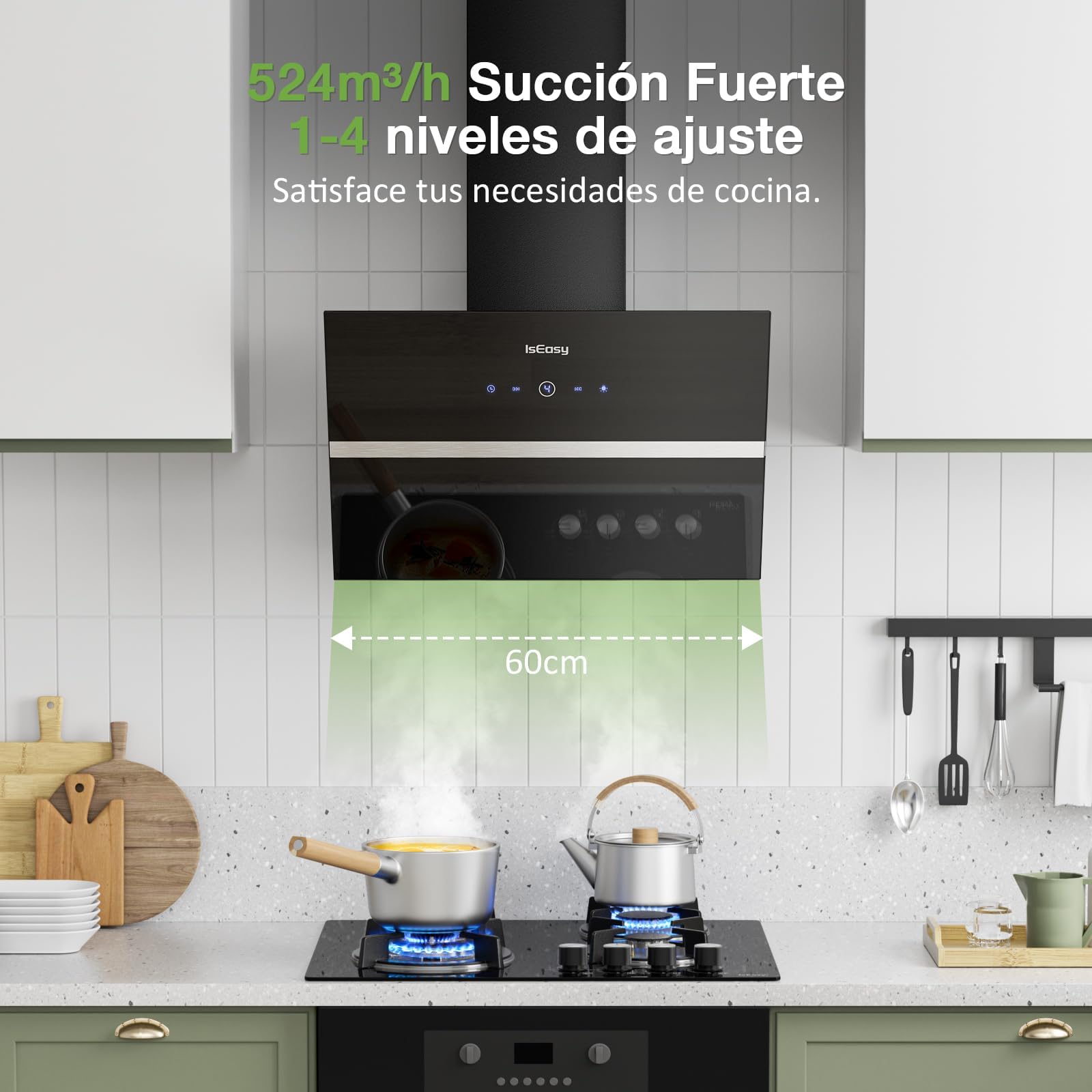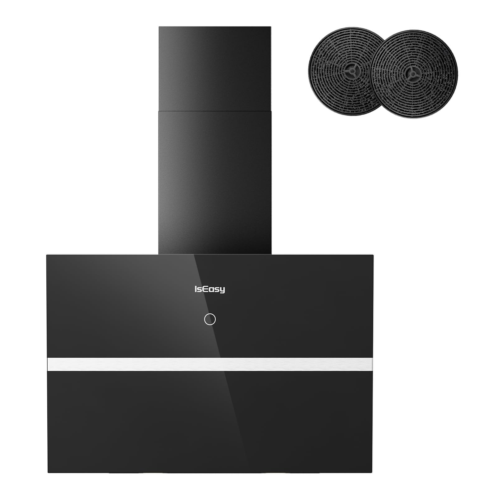Dunstabzugshaube 60 cm, IsEasy Umluft Dunstabzugshaube mit 524 m³/h starke Saugleistung, Wandhaube 60 cm mit kohlefilter, 4 Einstellstufen, Abluftmodus,1-9-Minuten-Timer, 58 dB, Schwarz, Effizienz A++