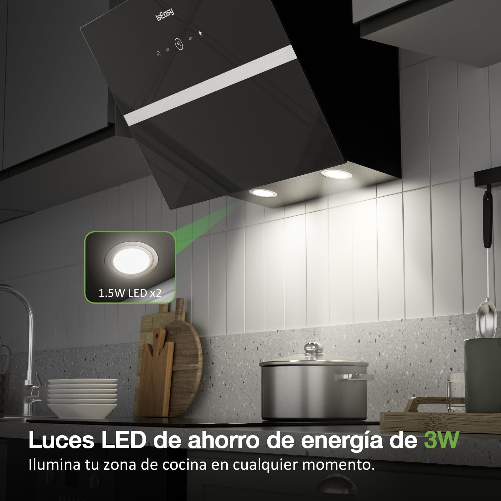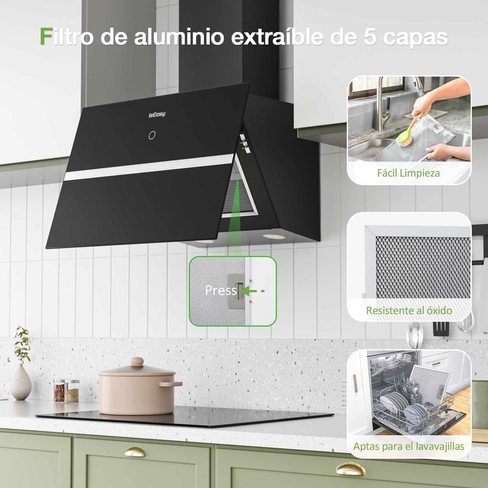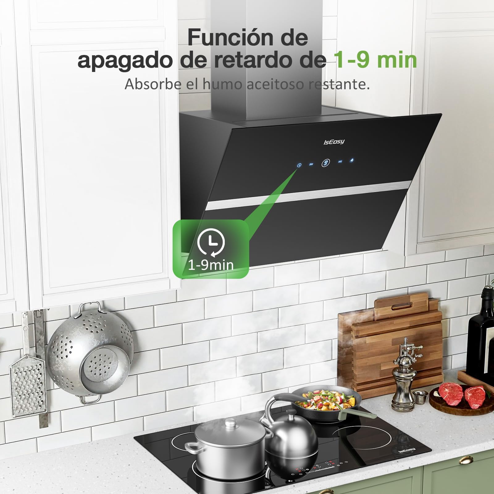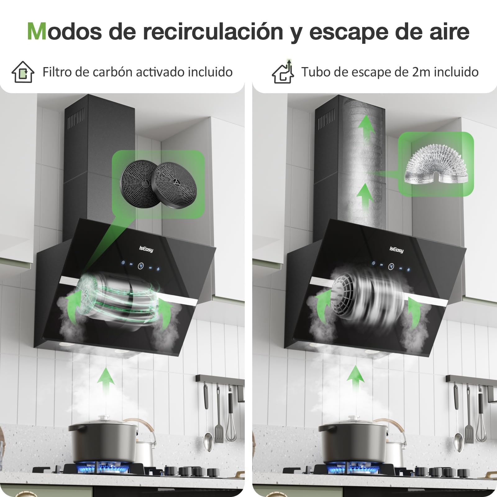 Dunstabzugshaube 60 cm, IsEasy Umluft Dunstabzugshaube mit 524 m³/h starke Saugleistung, Wandhaube 60 cm mit kohlefilter, 4 Einstellstufen, Abluftmodus,1-9-Minuten-Timer, 58 dB, Schwarz, Effizienz A++