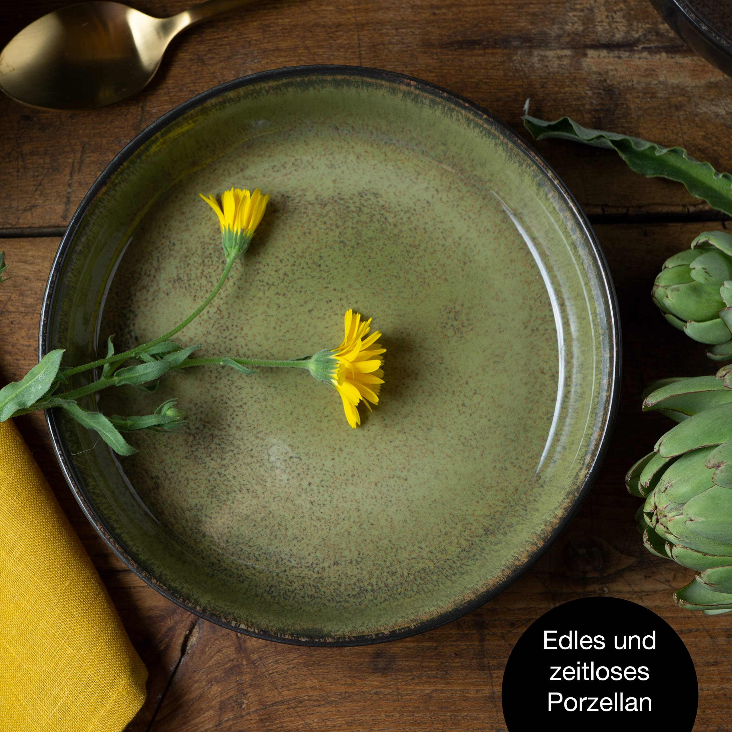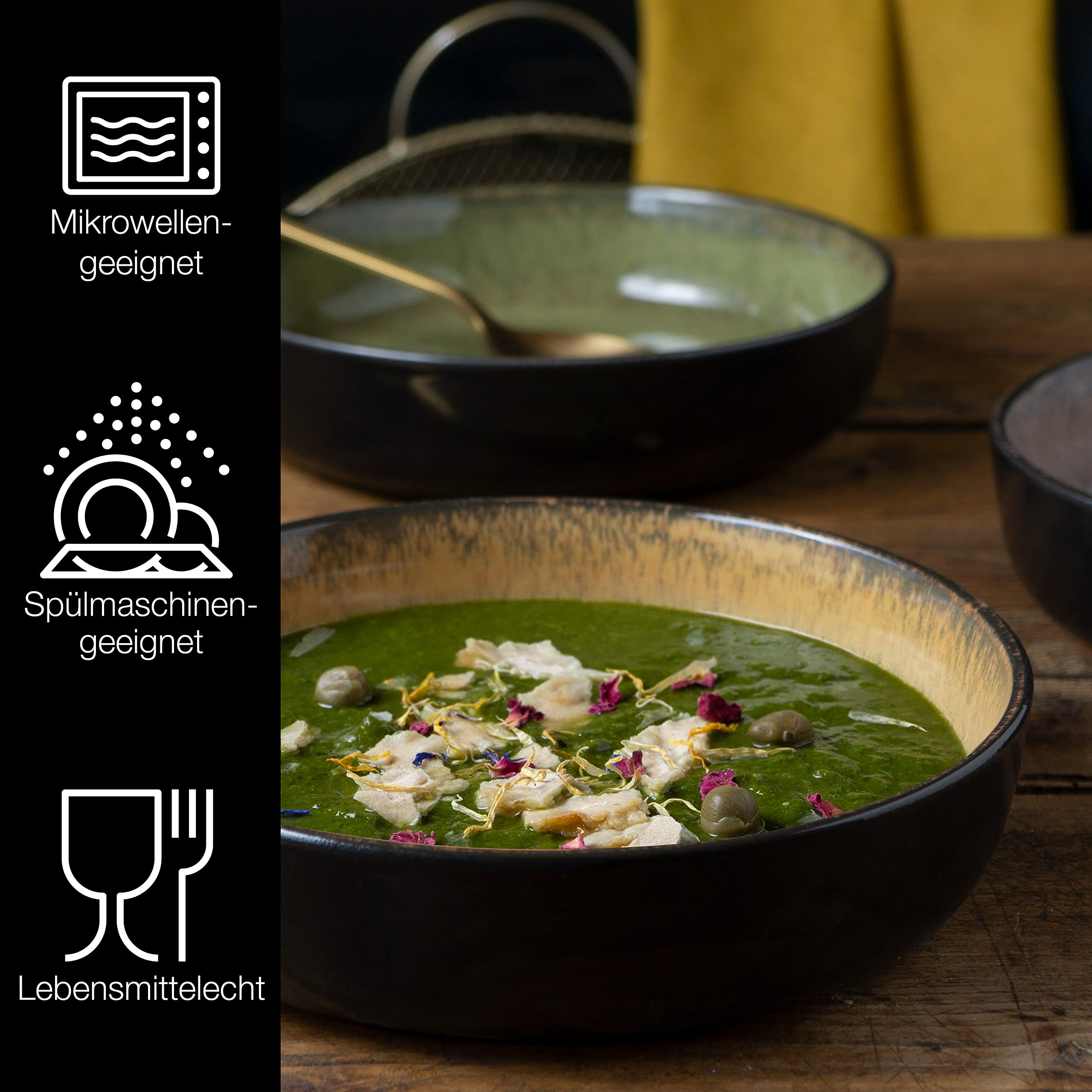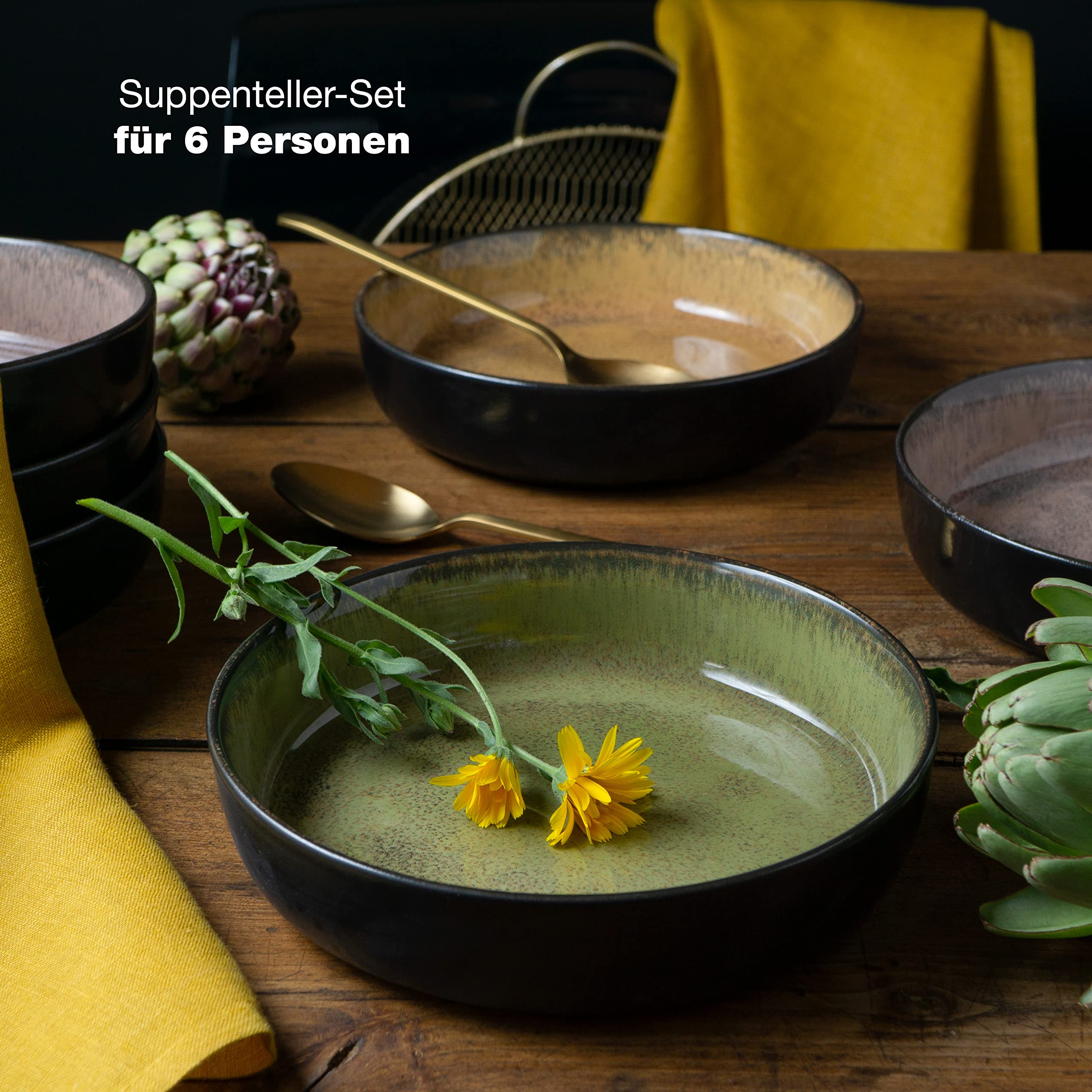 Moritz & Moritz VIDA 6er Suppen Teller Set Gelb-Grün-Rosa - Suppenteller für 6 Personen - Porzellan spülmaschinen- und mikrowellengeeignet
