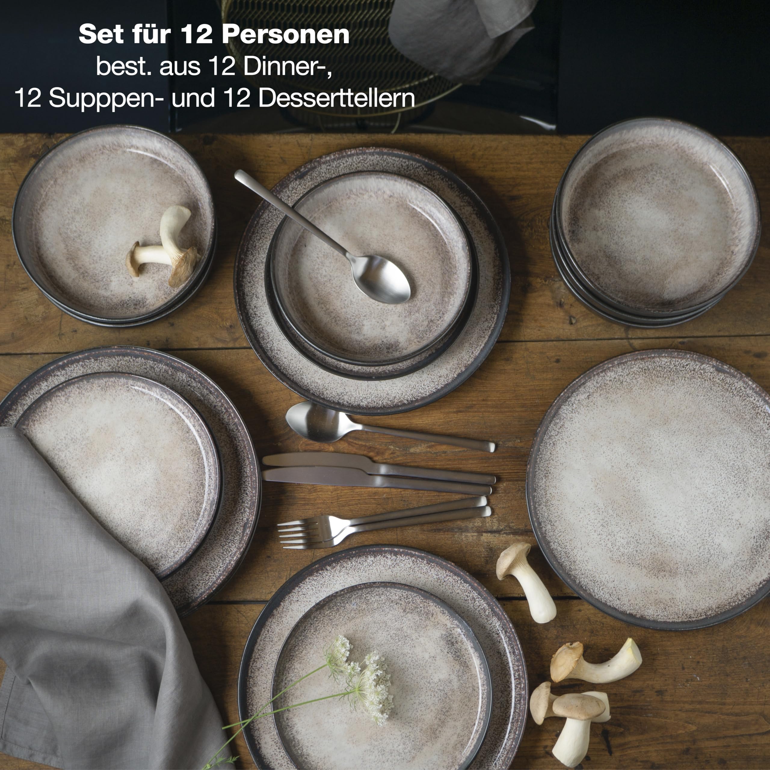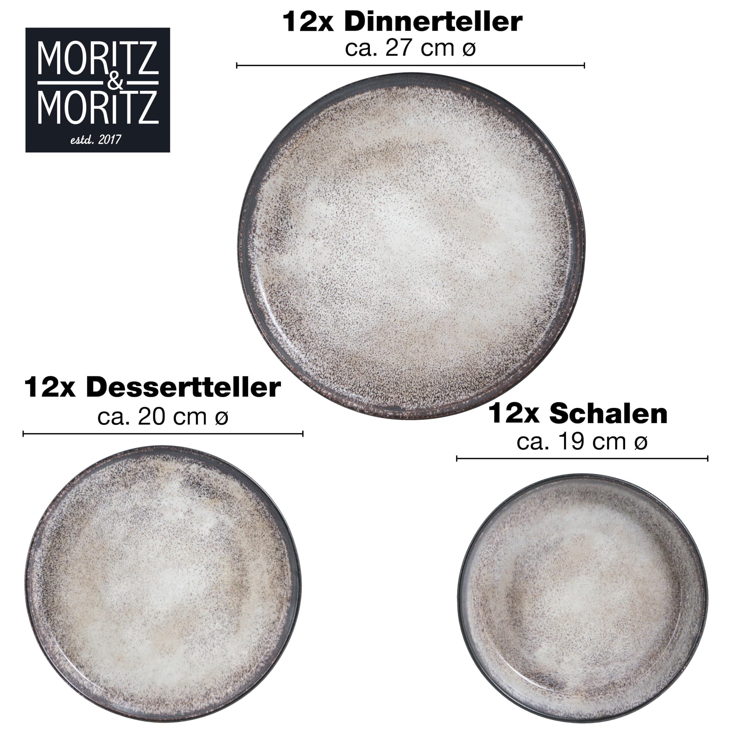 Moritz & Moritz VIDA Geschirrset 12 Personen Beige 36-tlg. - Modernes Porzellan Geschirr Set - Kratz-, Mikrowellen- & Spülmaschinenfest, Essgeschirr, Tafelservice, Kombiservice 12 Personen